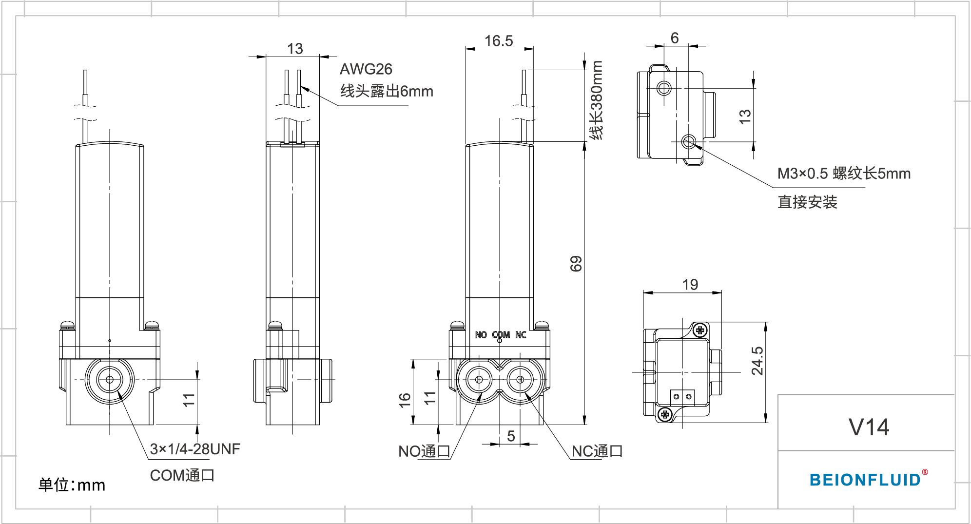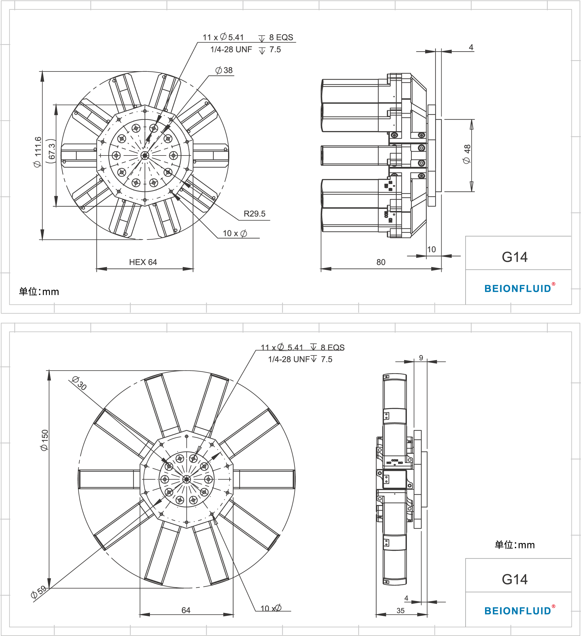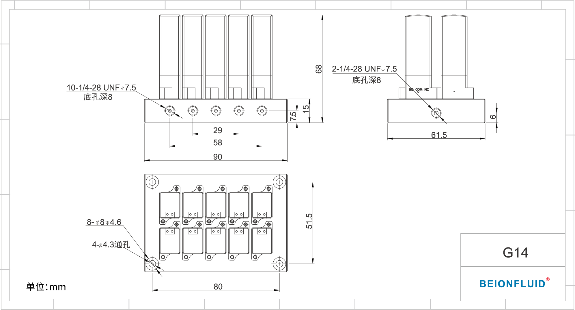 汇流板螺纹规格为1/4"-28UNF螺纹