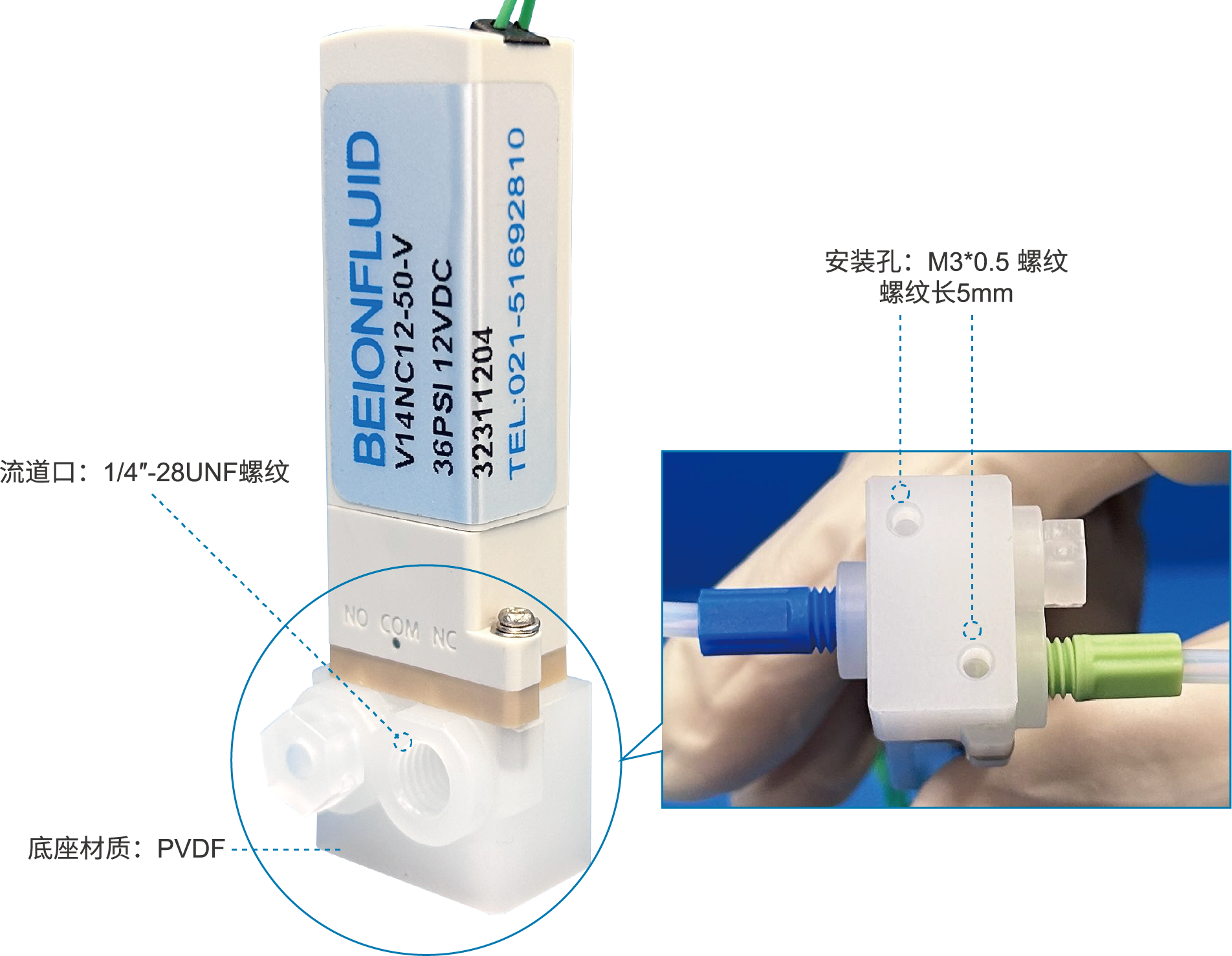 阀体材质可选PEEK/PVDF,膜片材质可选EPDM/FKM/FFKM